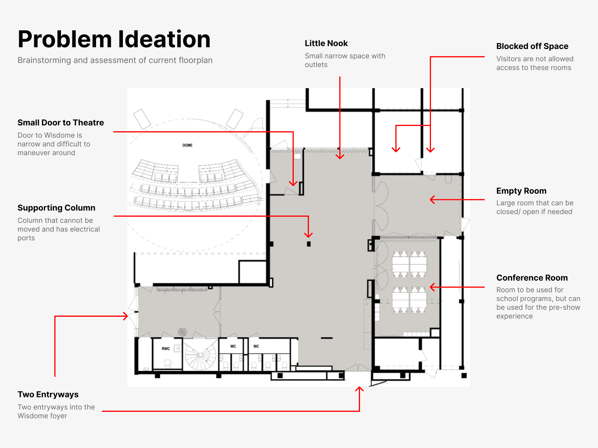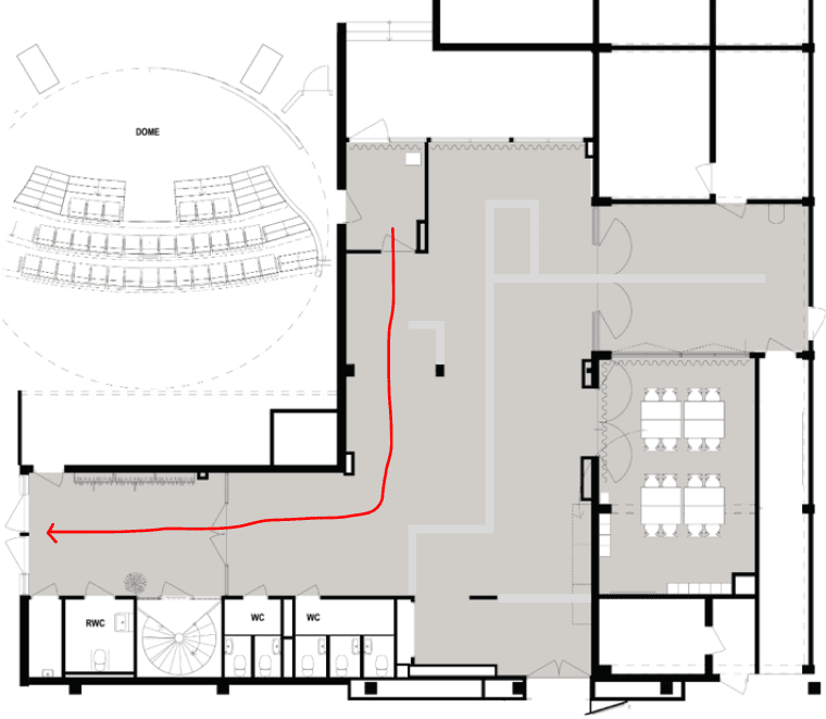 The final designed floorplan incorporated solutions to manage the flow of visitors when entering and exiting the Wisdome.